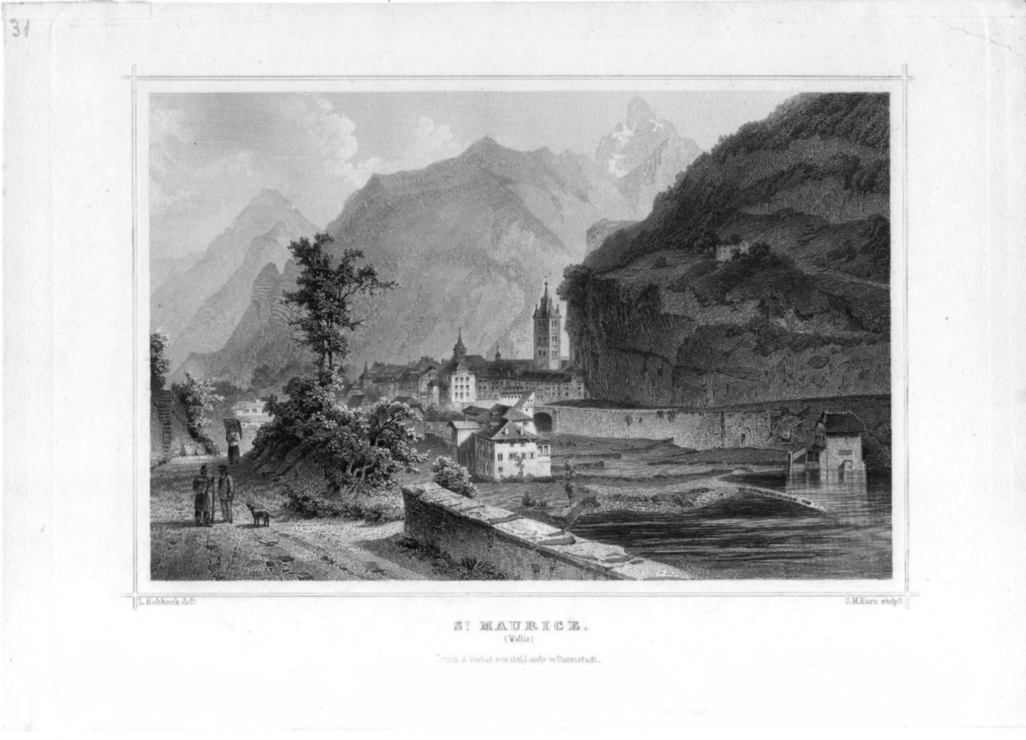 Stahlstich die Verena Klause und Bad Weissenstein bei Solothurn