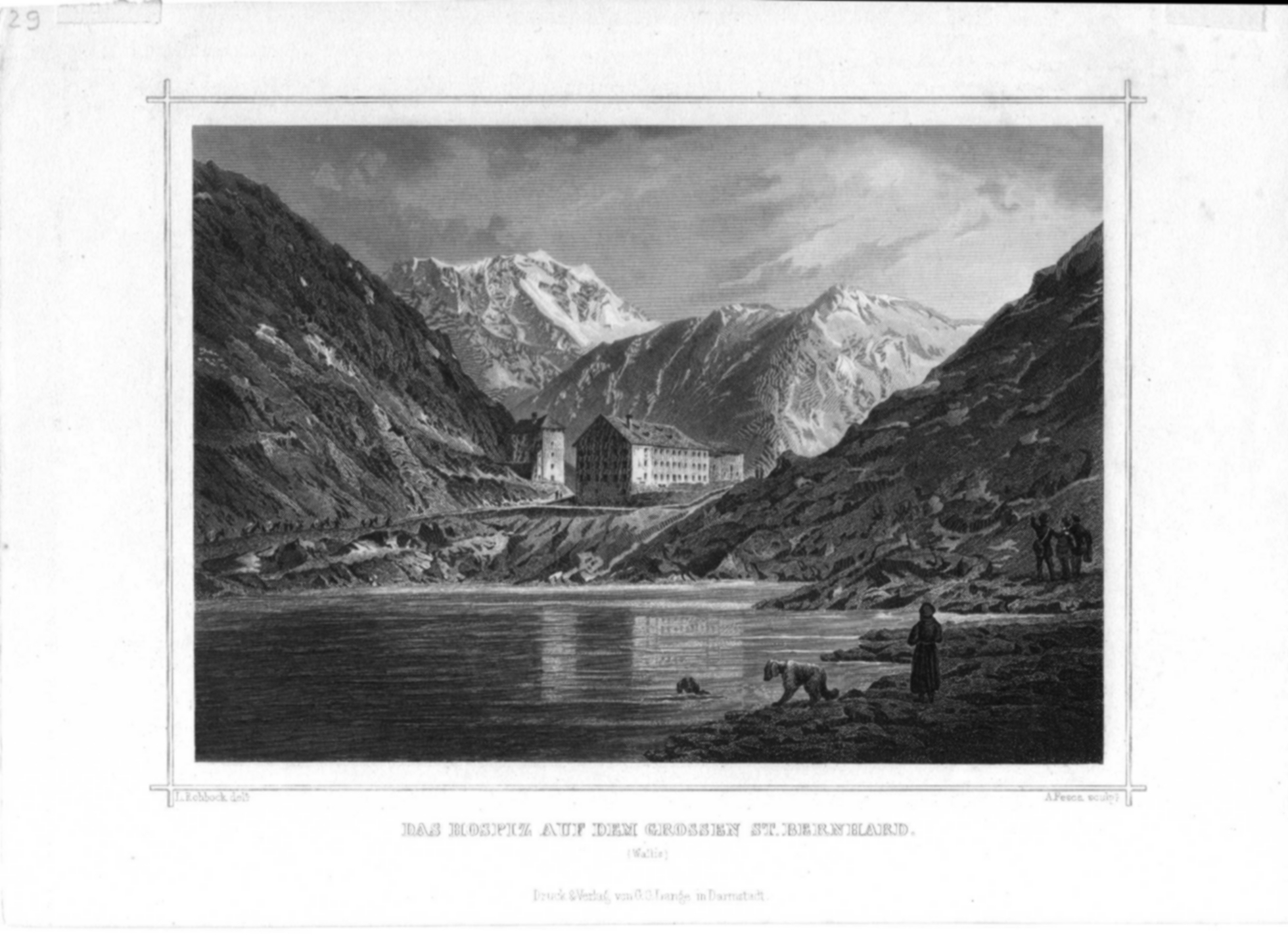 Stahlstich das Hospiz auf dem grossen St. Bernhard