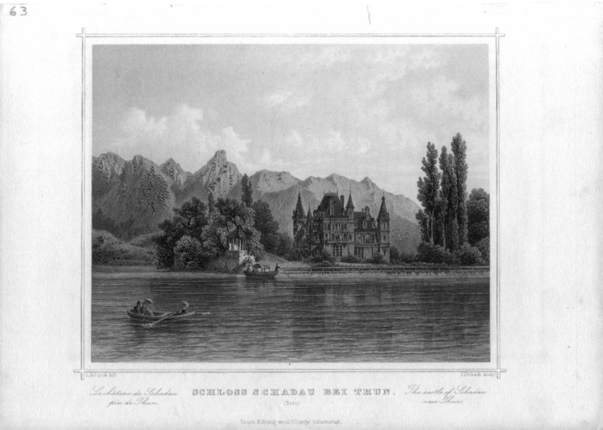 Stahlstich der Oeschinen-See und die Bluemlisap